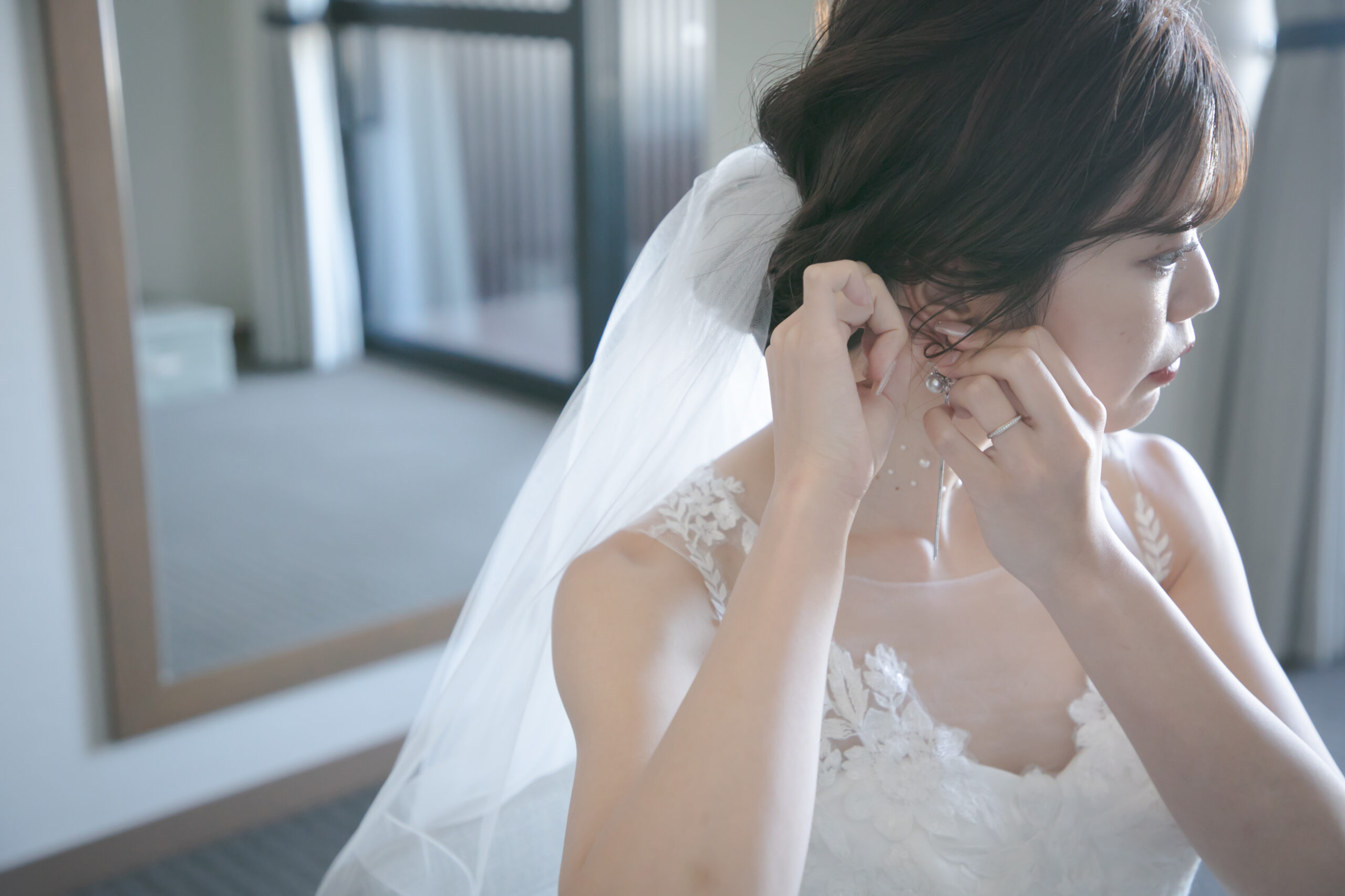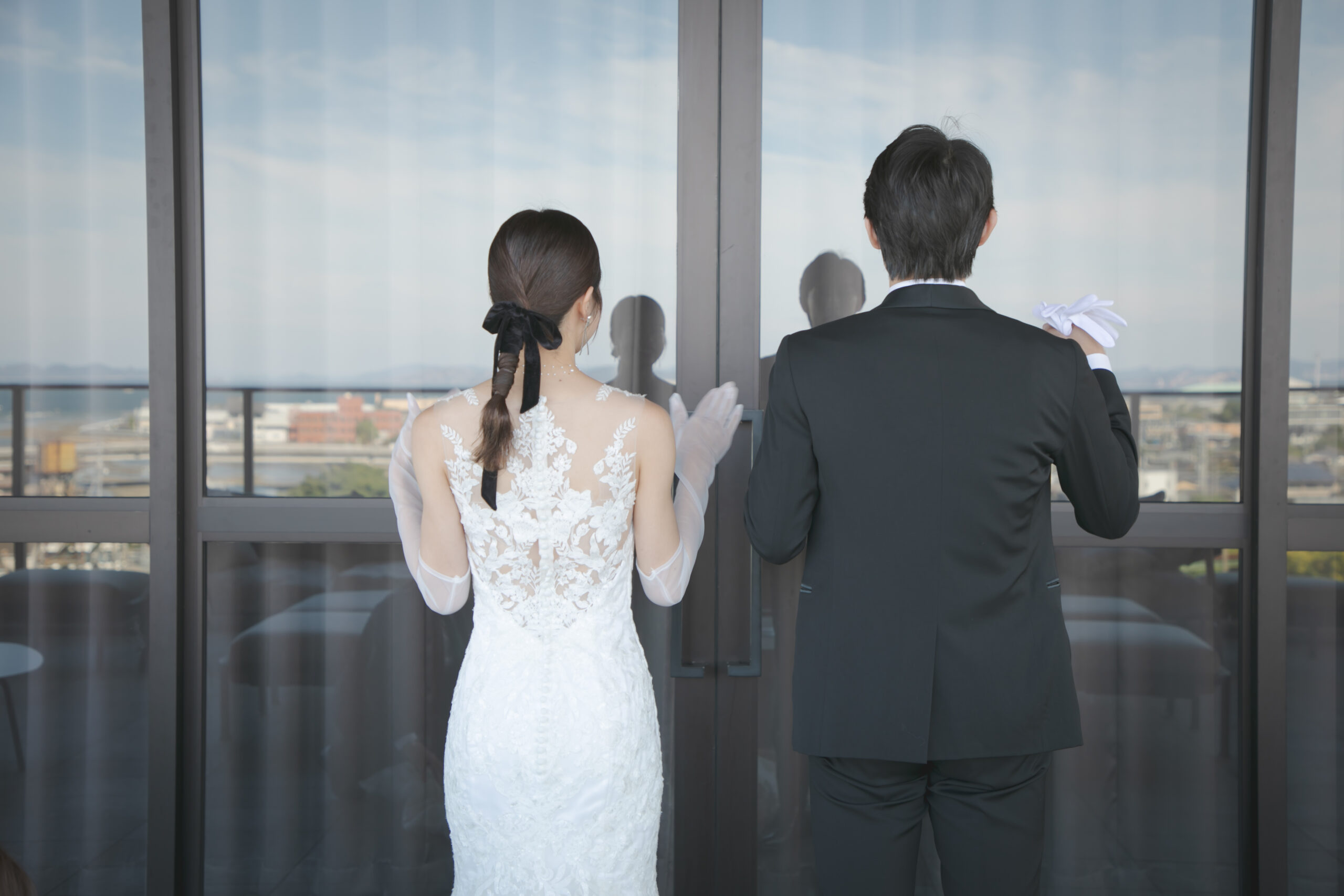 新婦様は袖にボリュームがあり 片側のスカートに