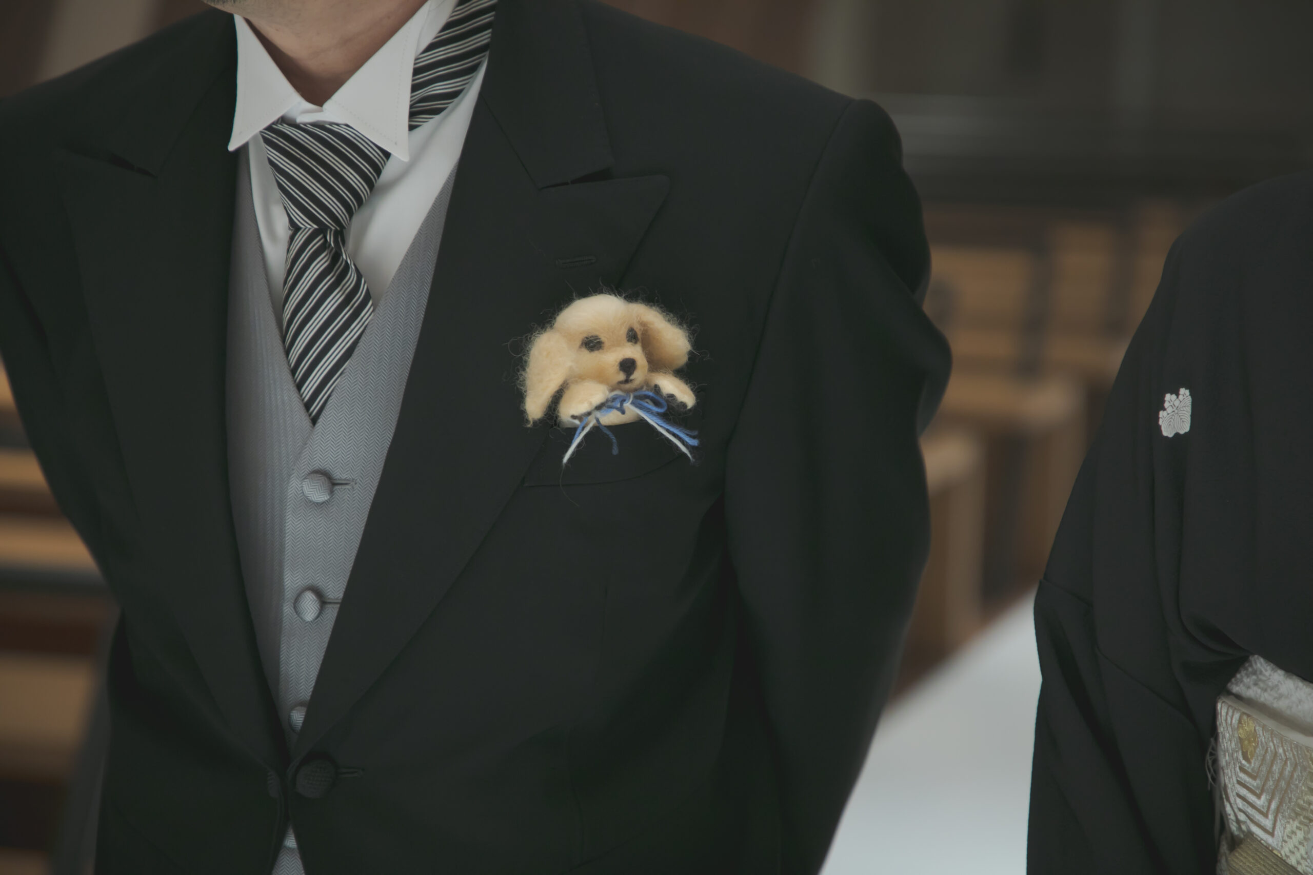 お父様の胸ポケットでは 新婦様ご家族の愛犬も一緒です💐