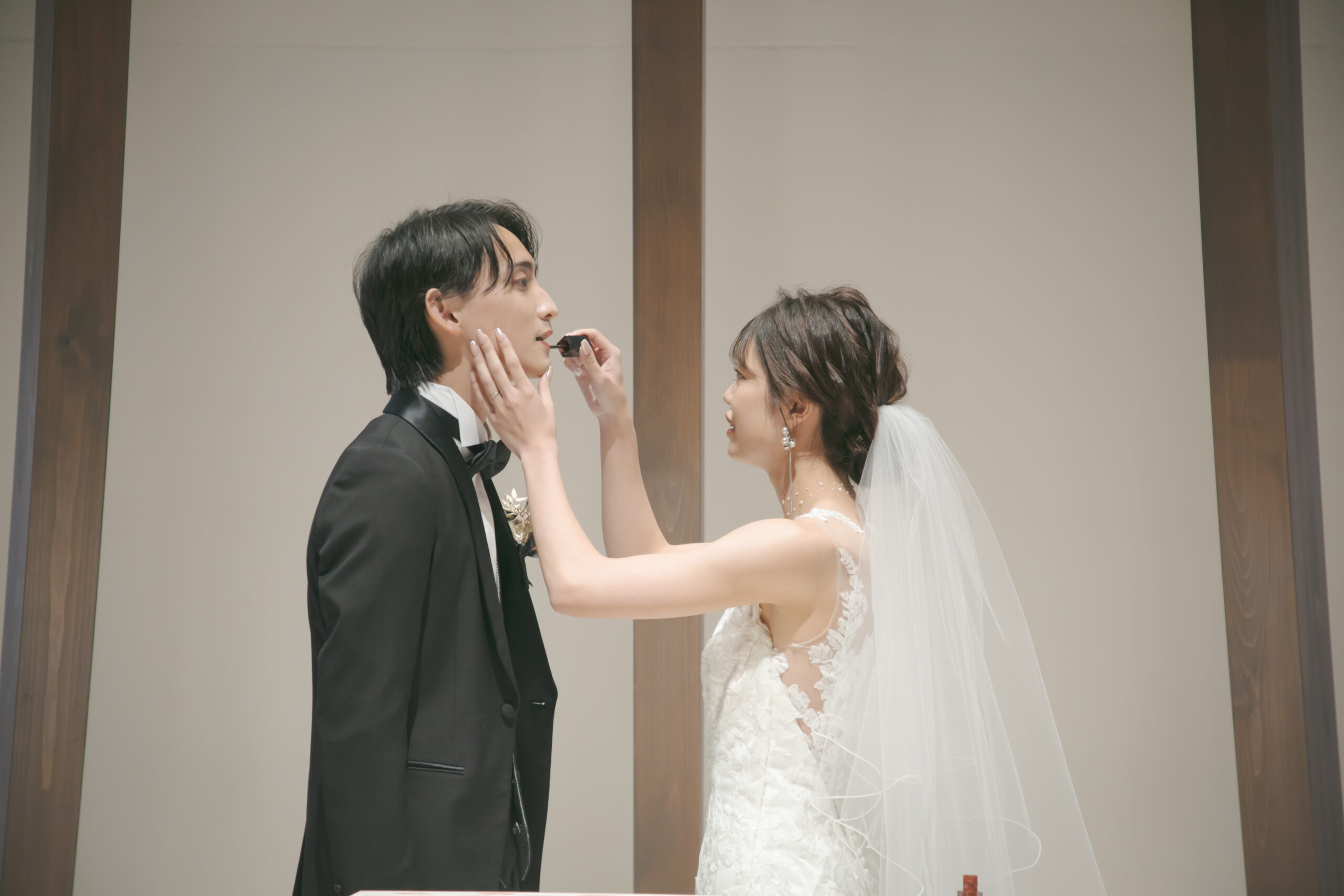 新郎様には新婦様がリップを塗ります💄