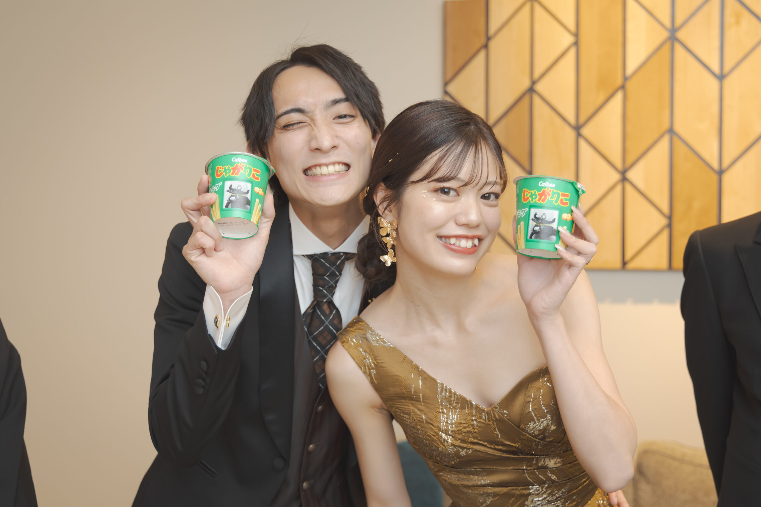 お見送り品はおふたりの写真入りのじゃがりこ!
