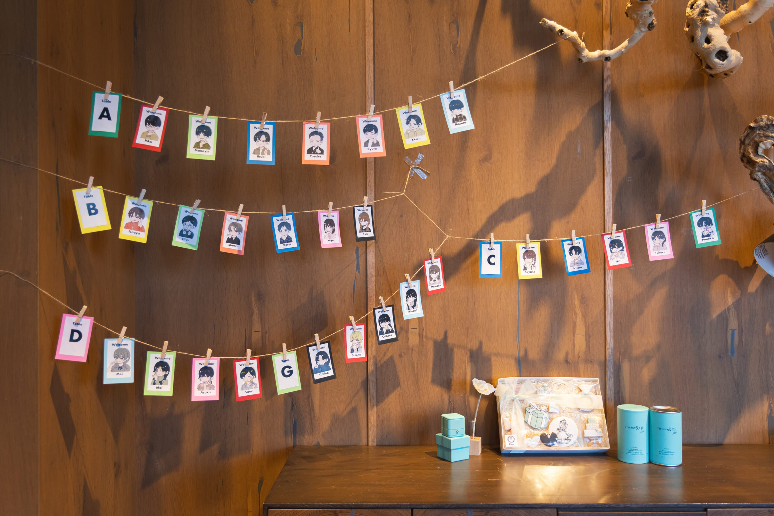 ゲスト様お一人お一人の似顔絵エスコートカードはご友人様がこの日の為に書いてくださったそうです