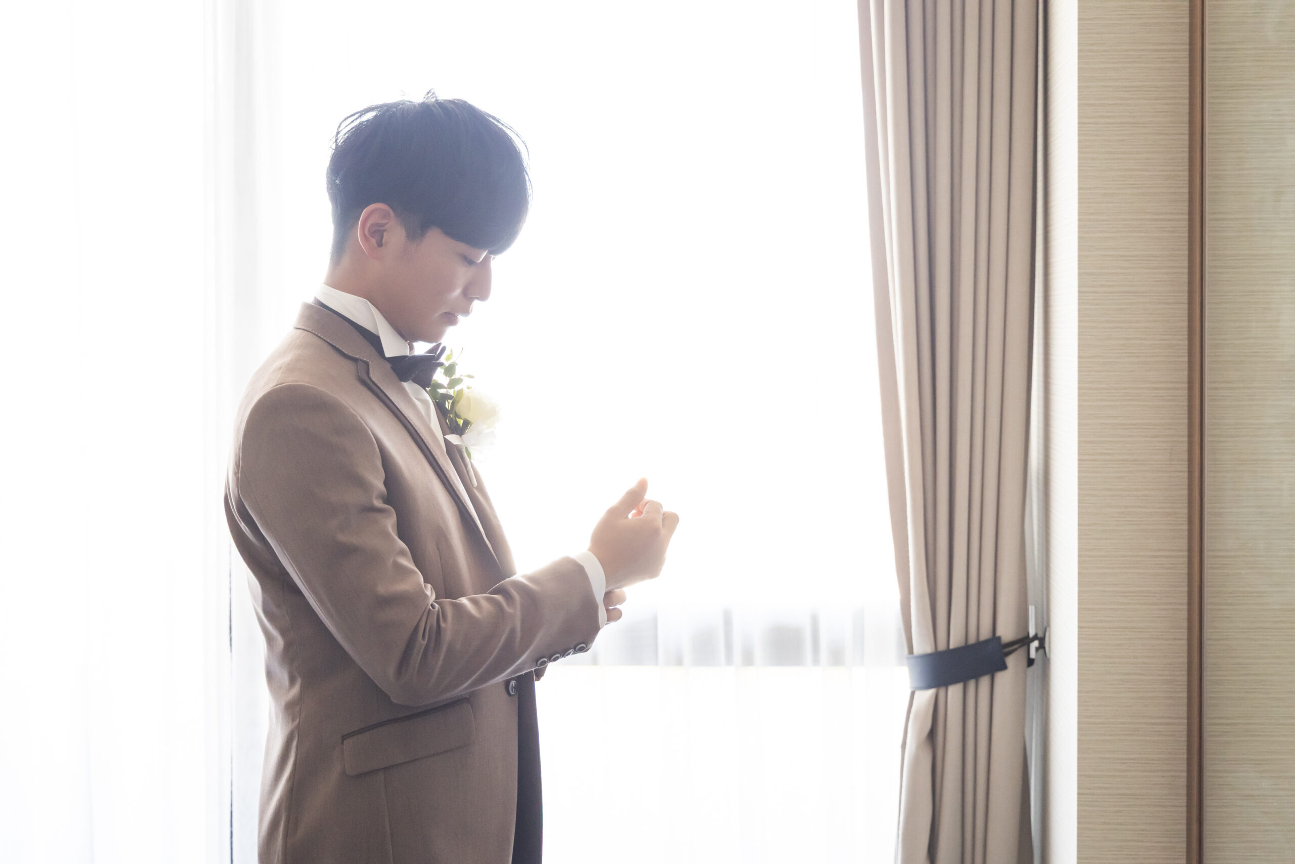 3Fのお控え室では 朝から少し緊張されていたお二人がお支度を進めています
