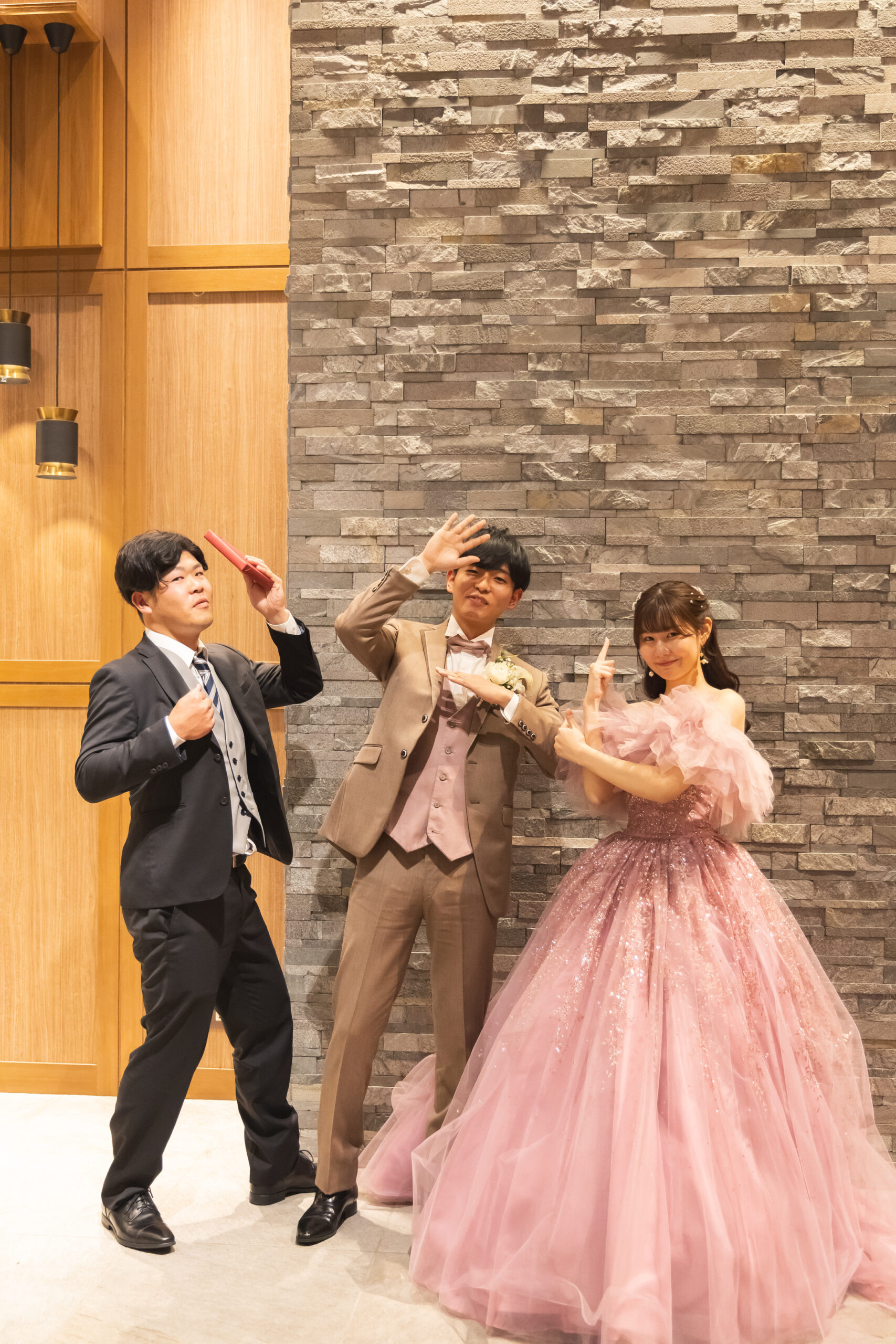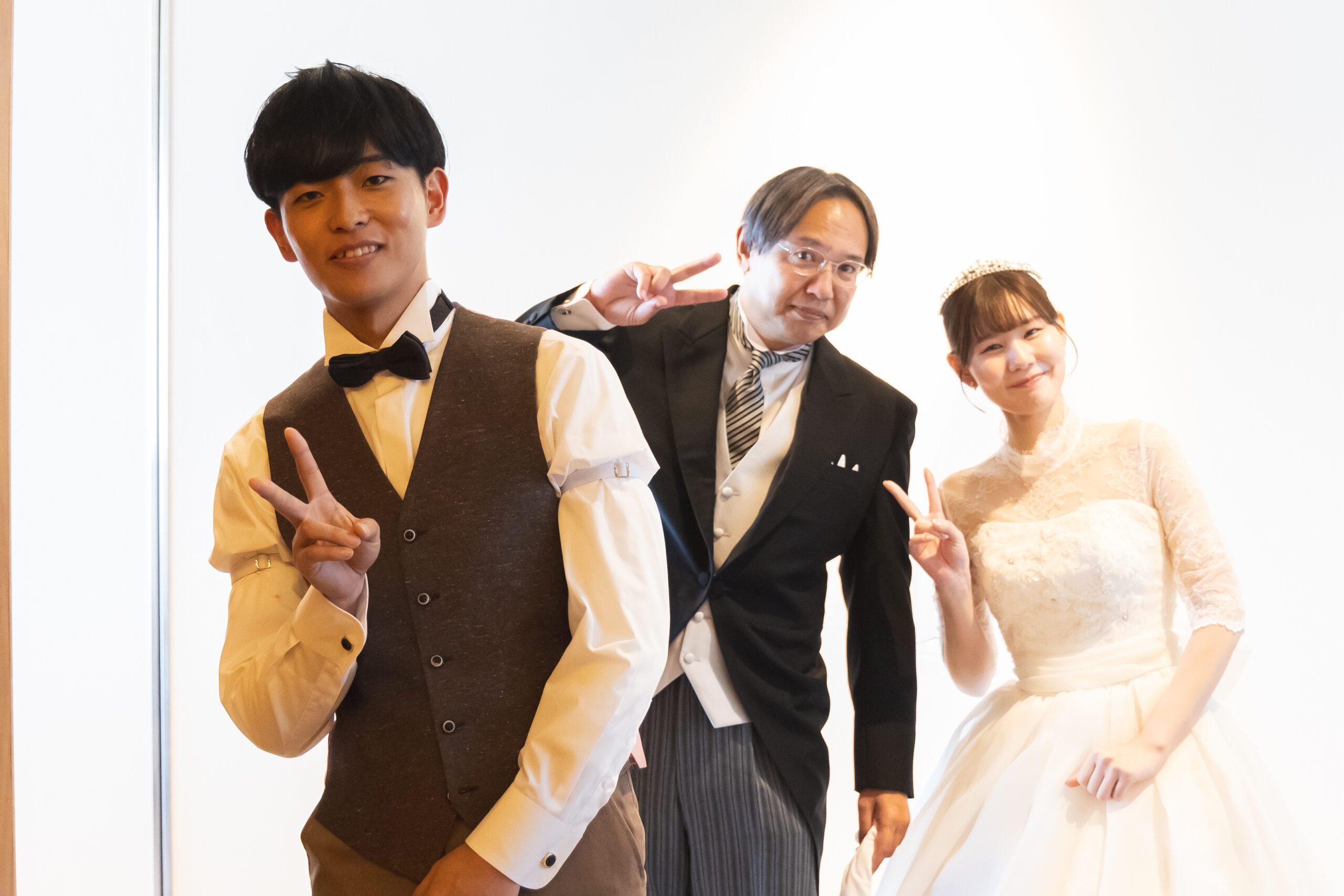 淡いカラーのタキシードにキラキラのドレス