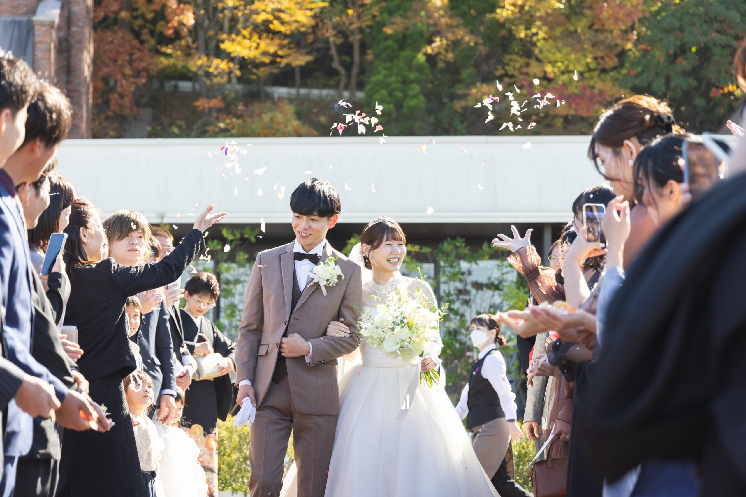 皆様からの祝福のフラワーシャワーに包まれながらアフターセレモニーがスタートしました