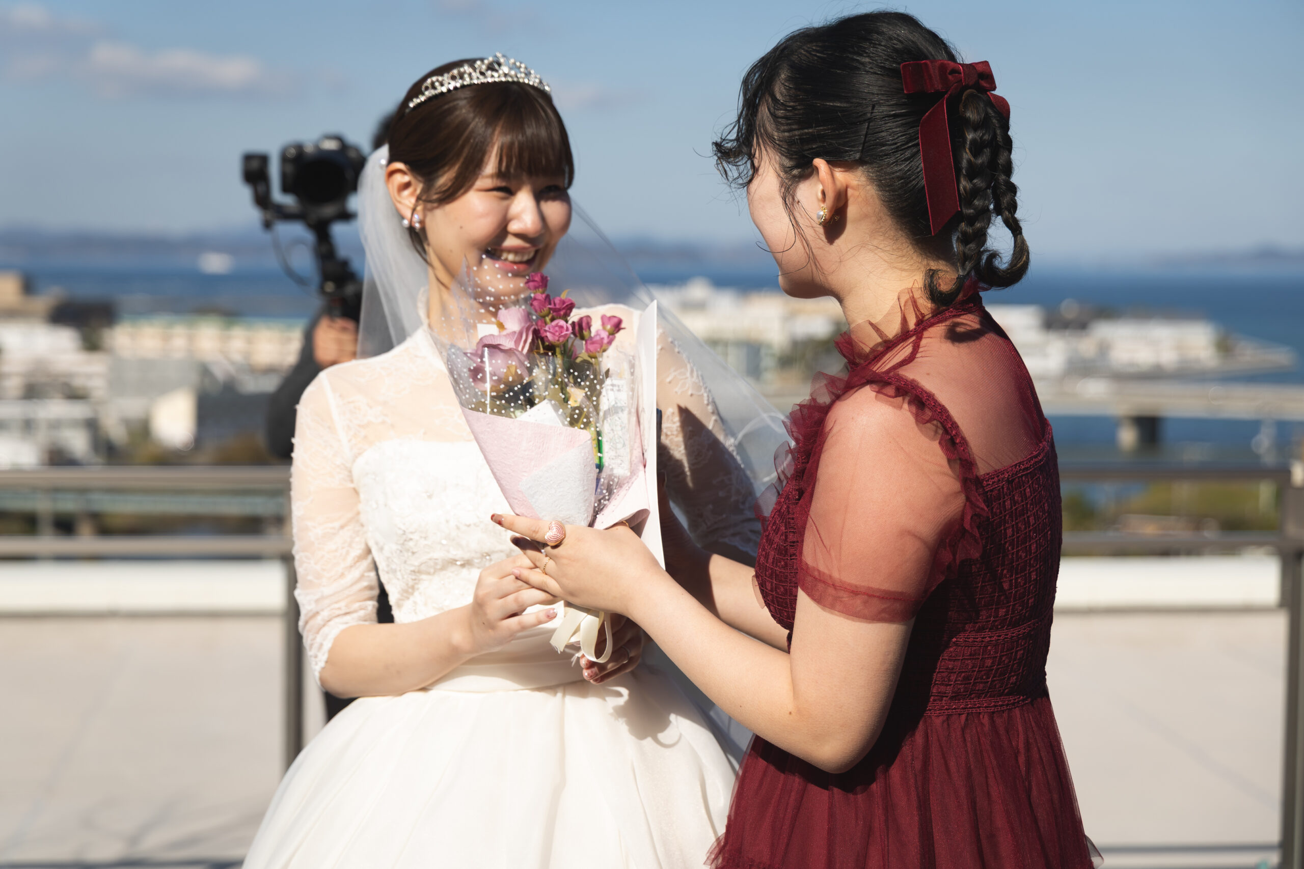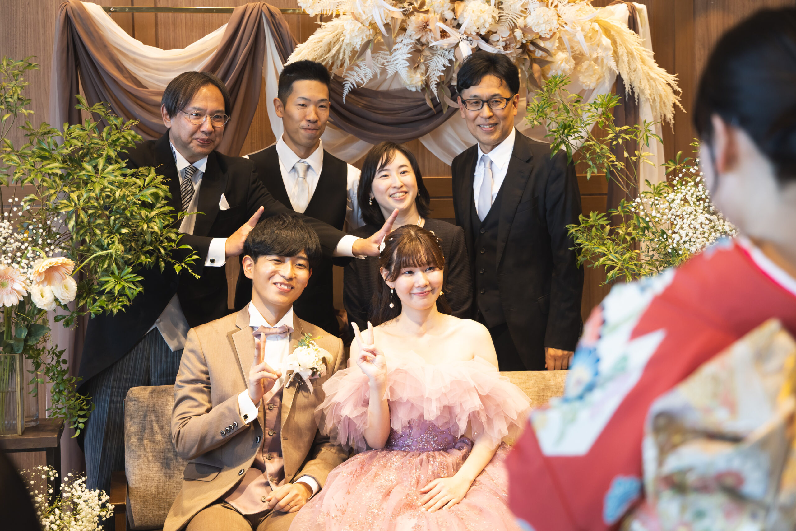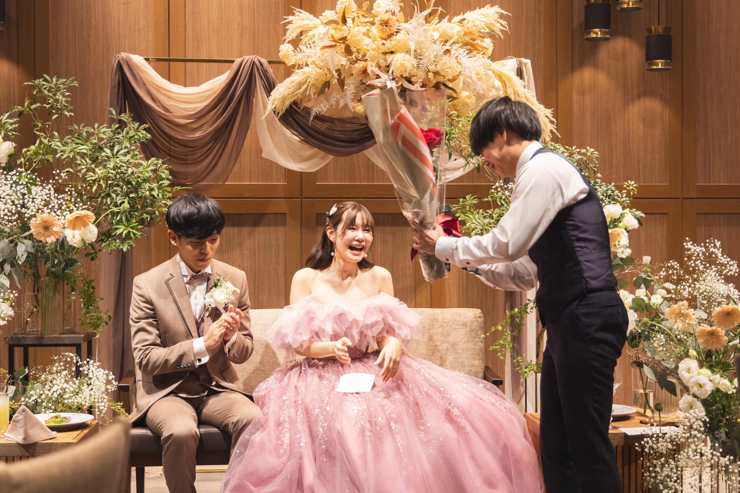 ご新郎様からではなく あえてご兄妹から真っ赤なバラの花束を渡せば面白いんじゃない?!というお父様のユニークなご提案で決まったサプライズ