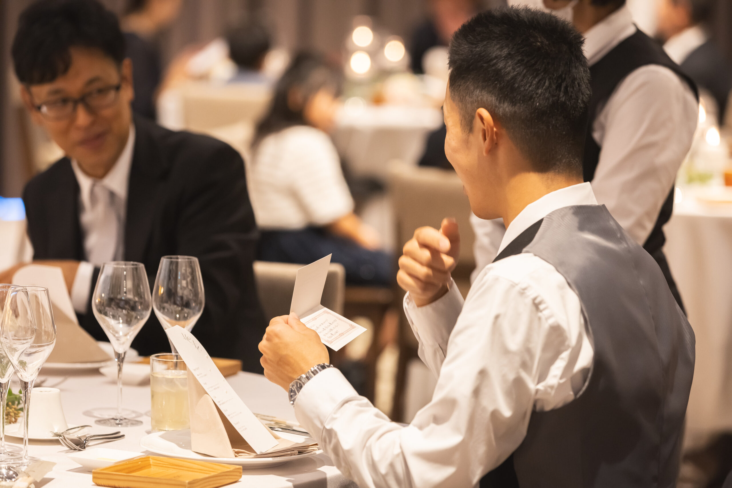 お一人お一人の席札の裏に書かれていたお二人からのメッセージを皆様が嬉しそうに読まれていました