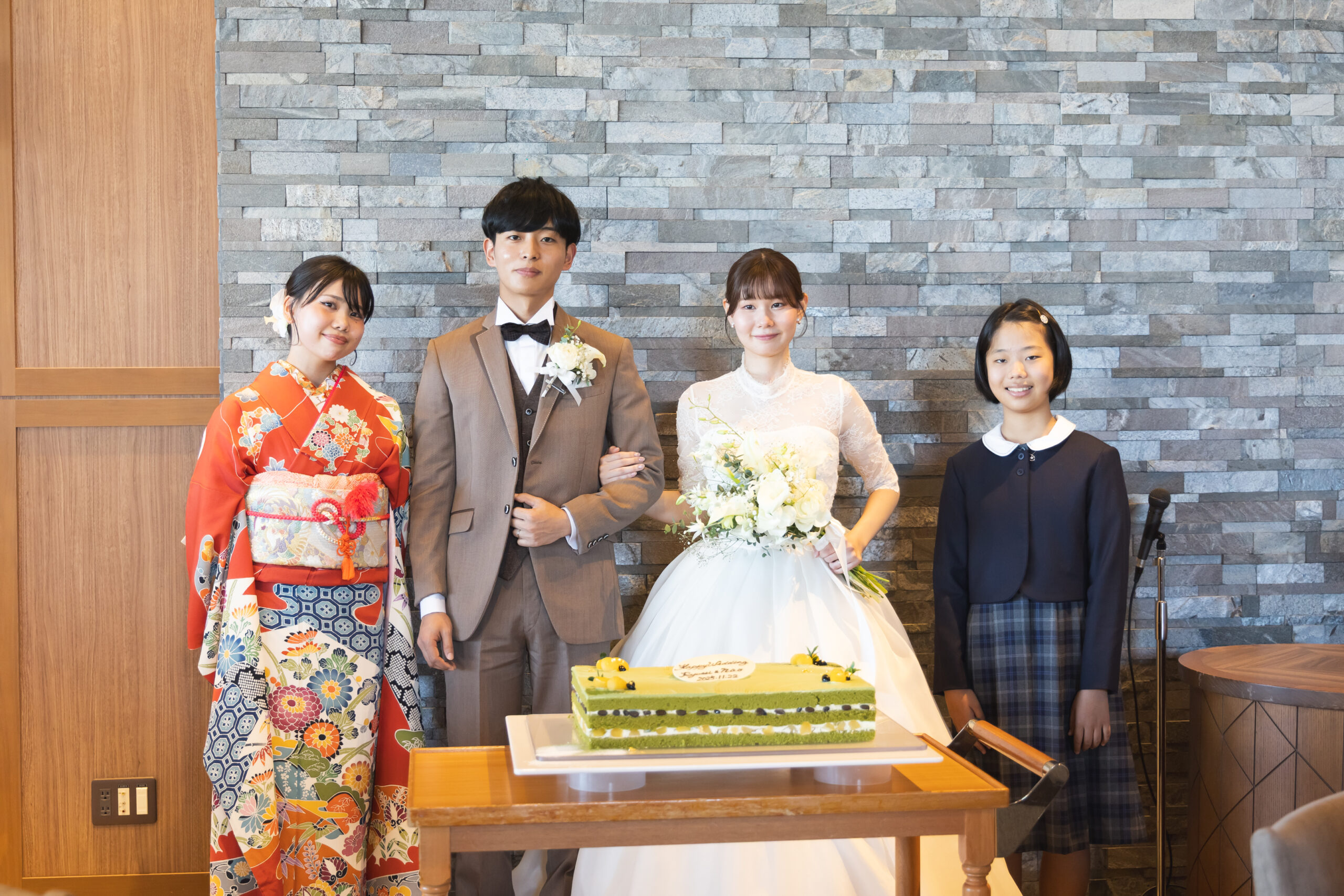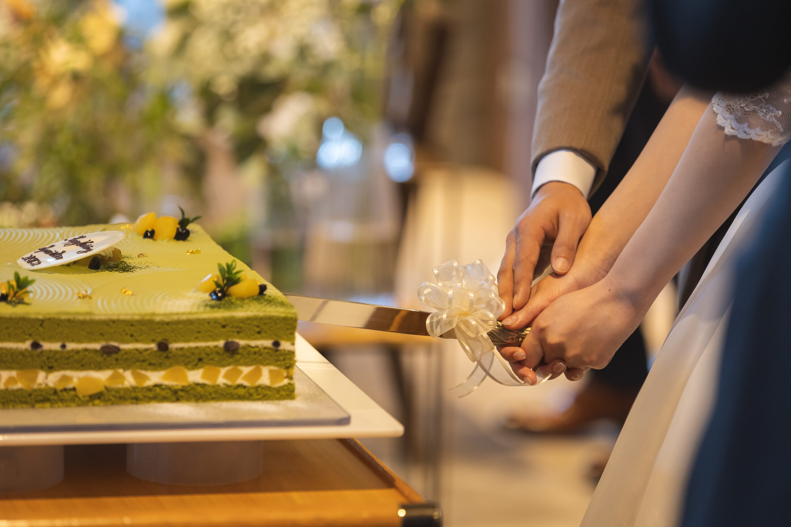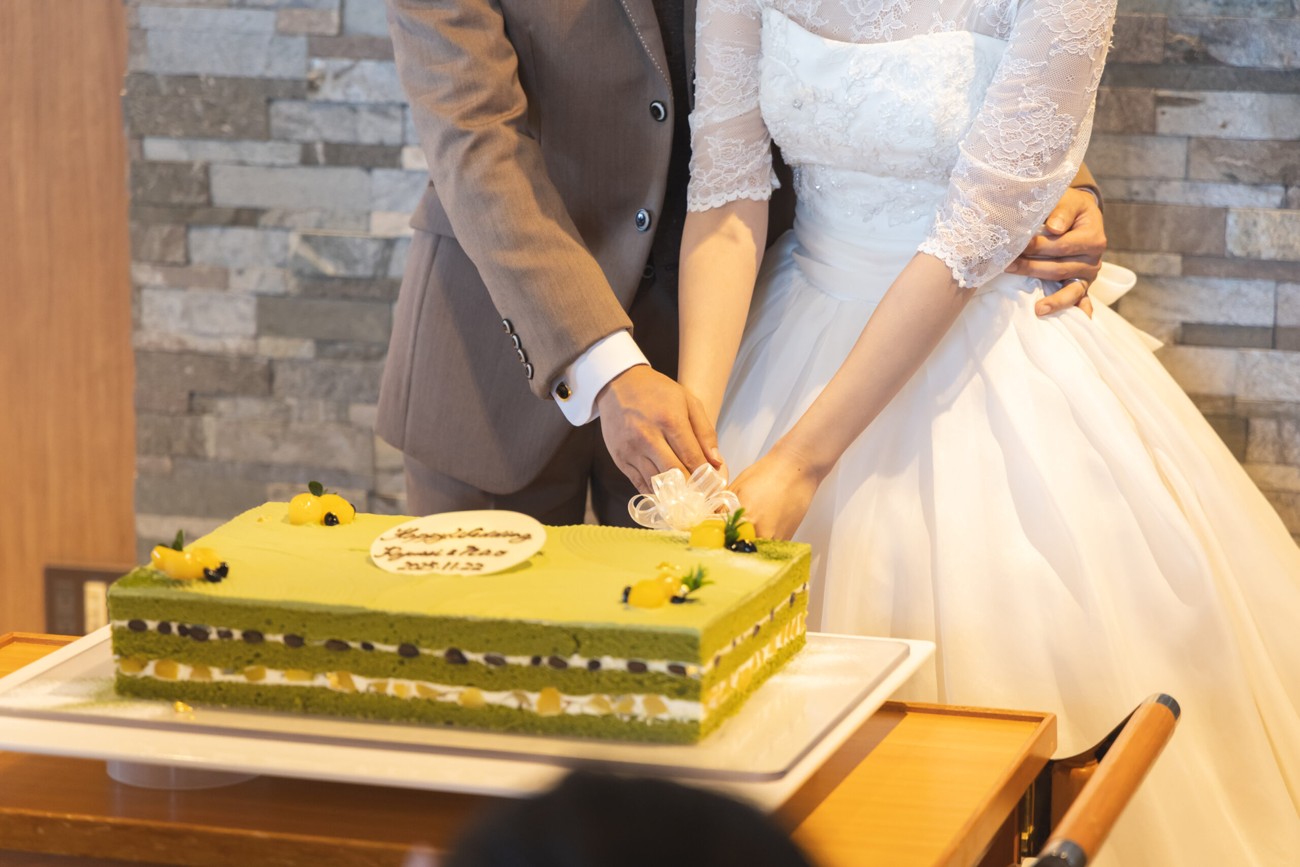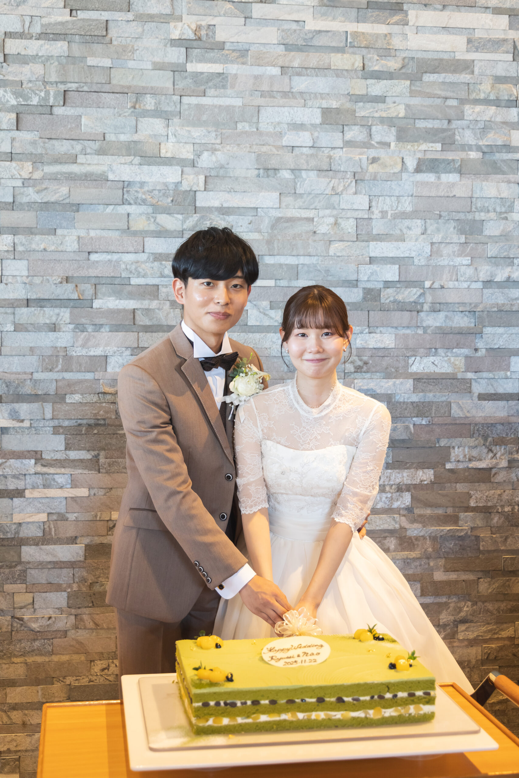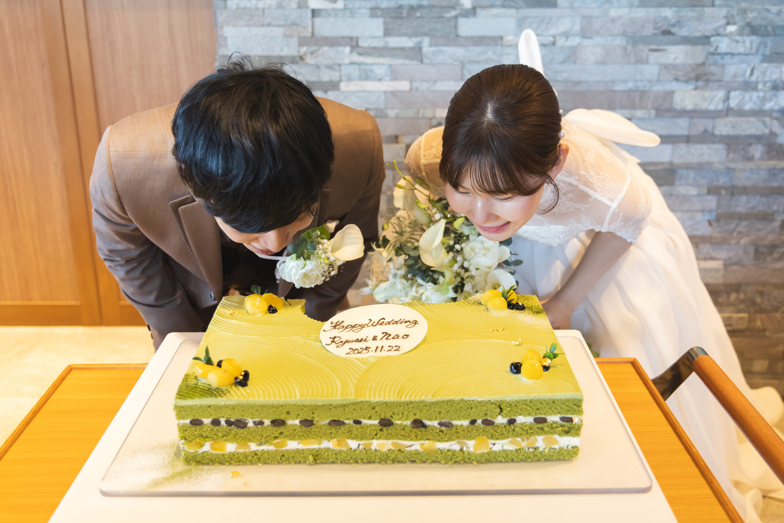 お二人が大好きな抹茶のウェディングケーキです♪