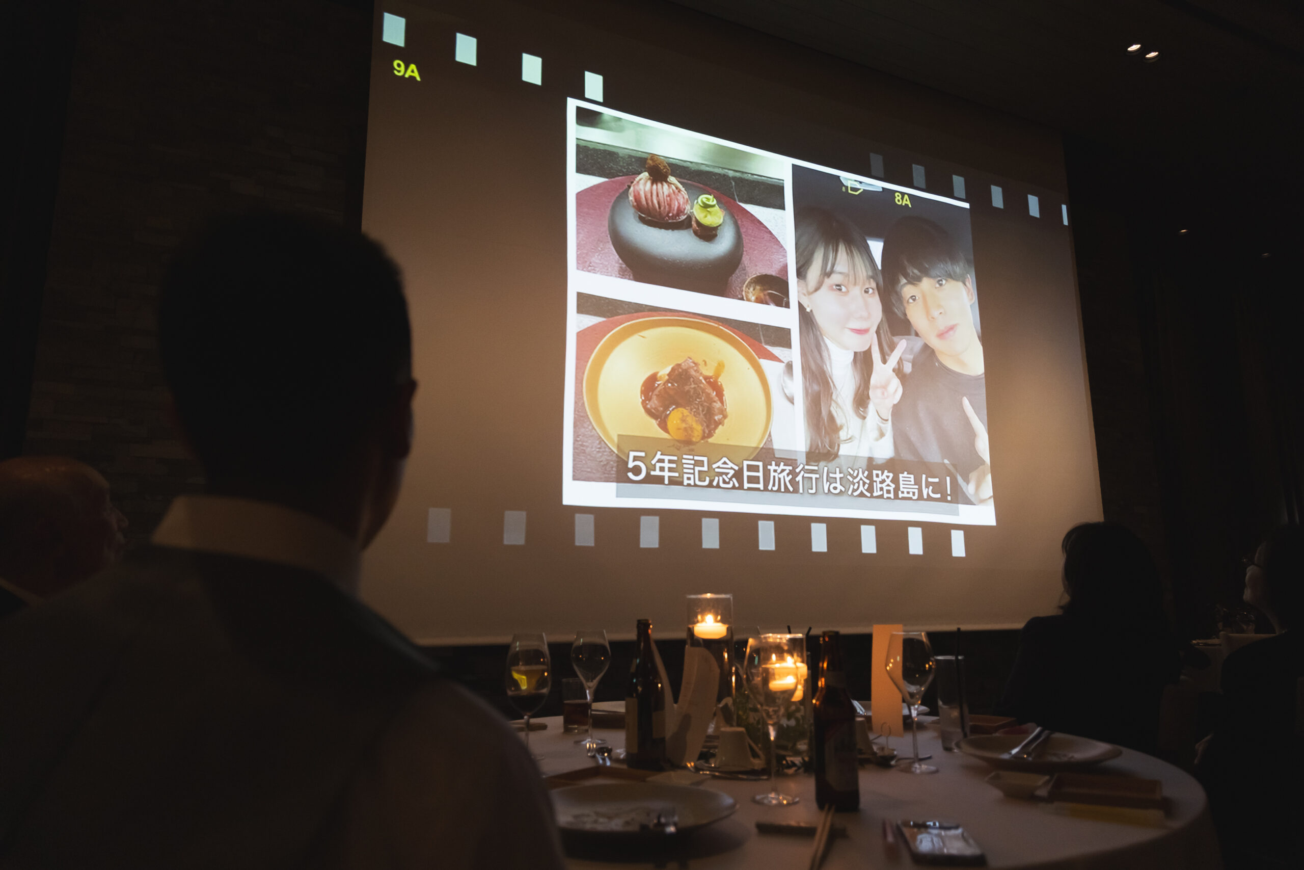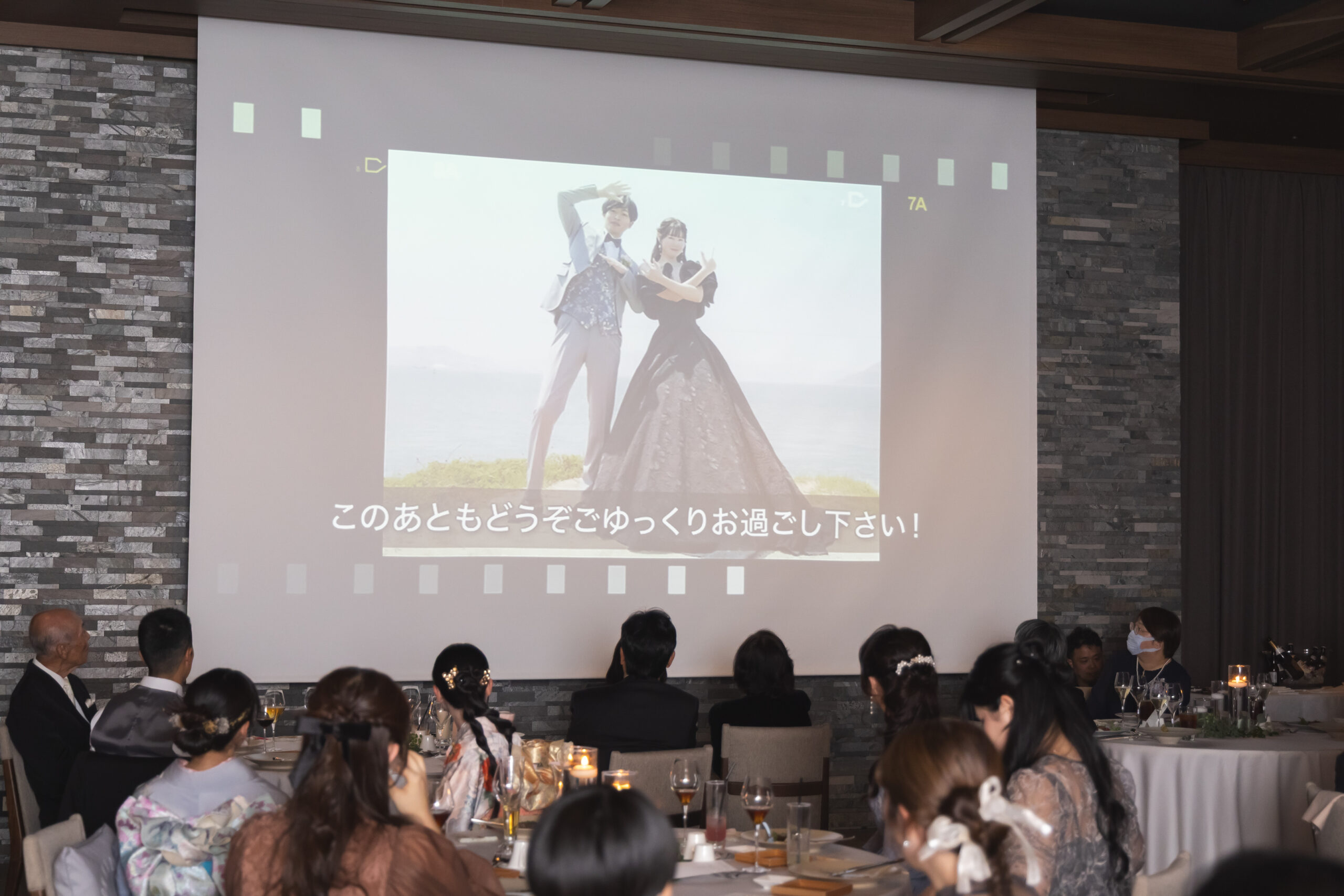 お2人がお色直し中はゲスト様に手作りのヒストリームービーをご覧いただきました