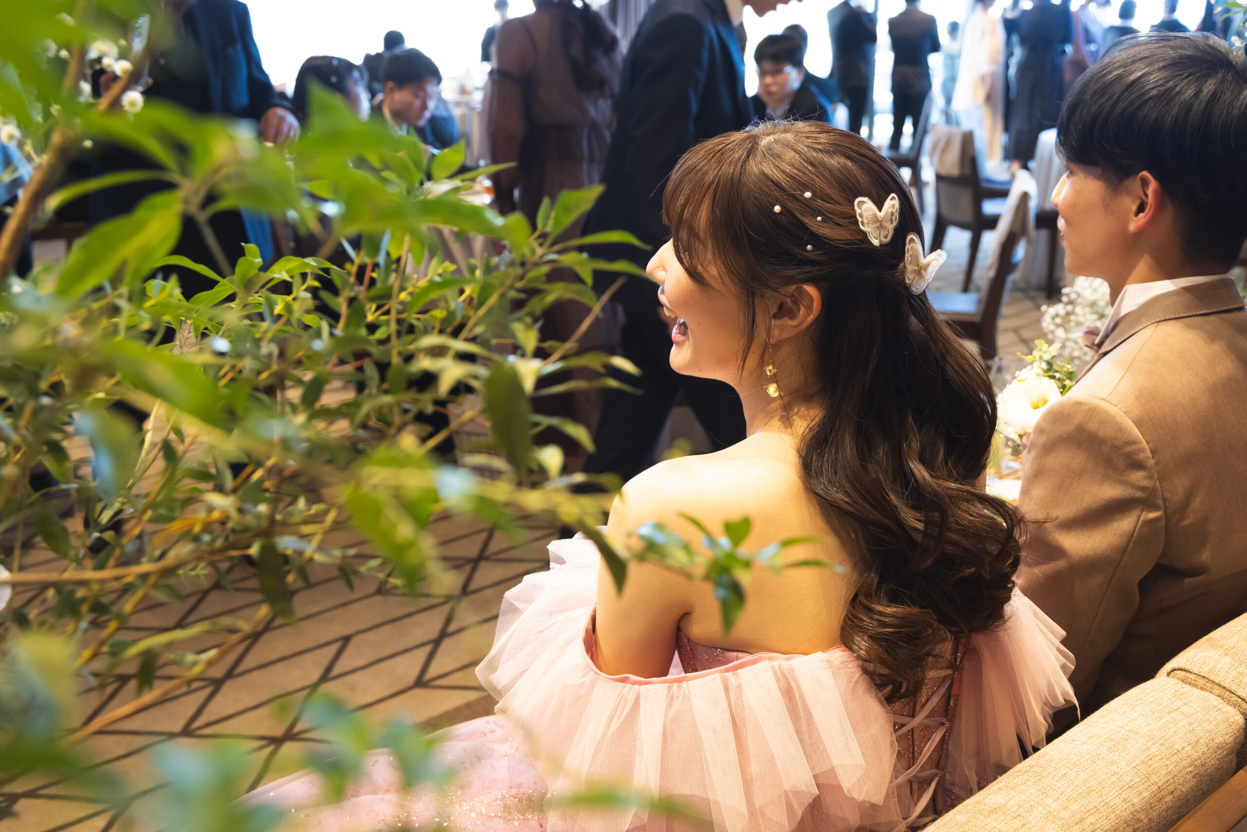 ヘアスタイルもアップヘアから ドレスに合わせておろしスタイルに